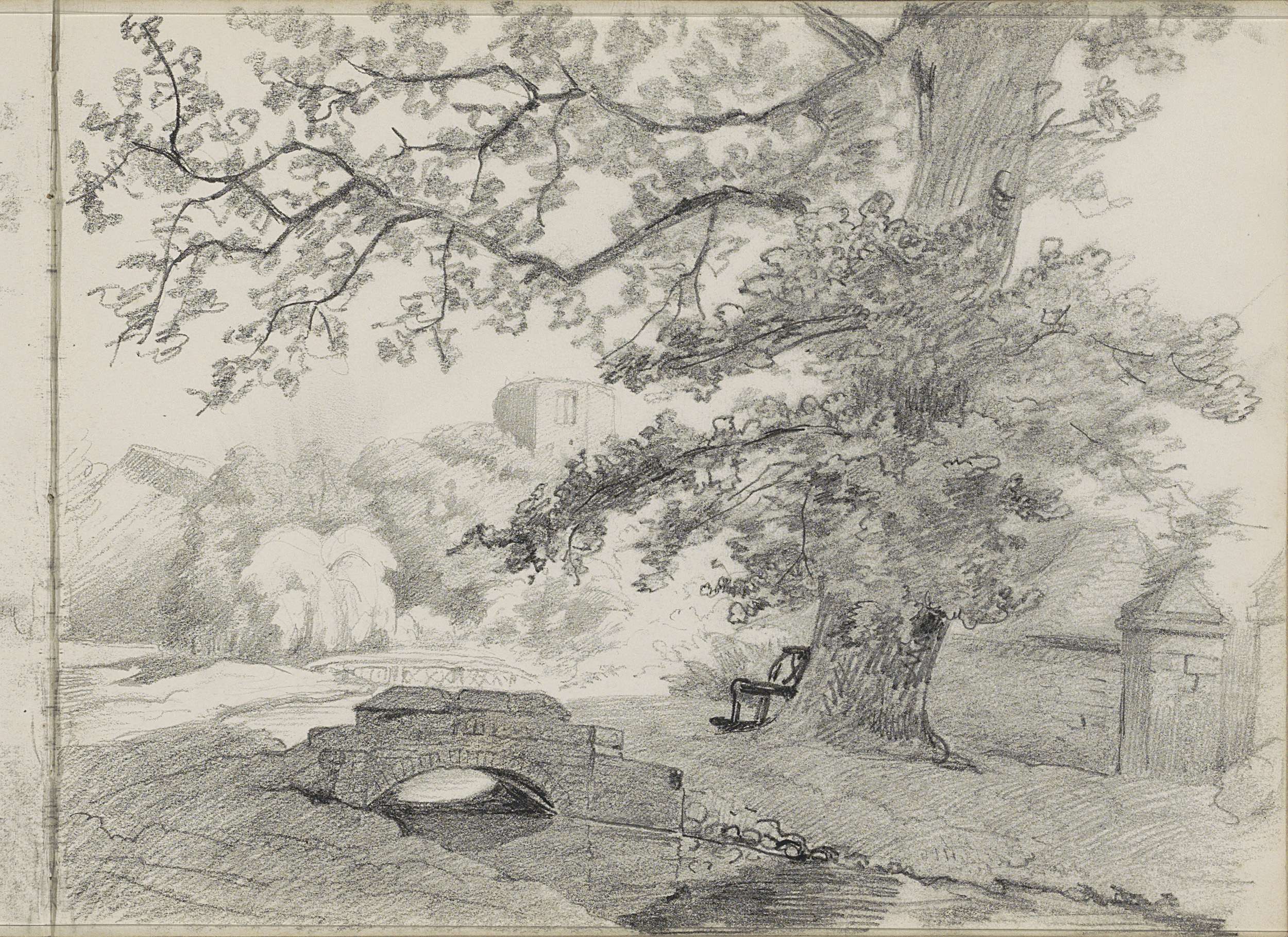 Brug bij Pré Catalan en een monument op begraafplaat...