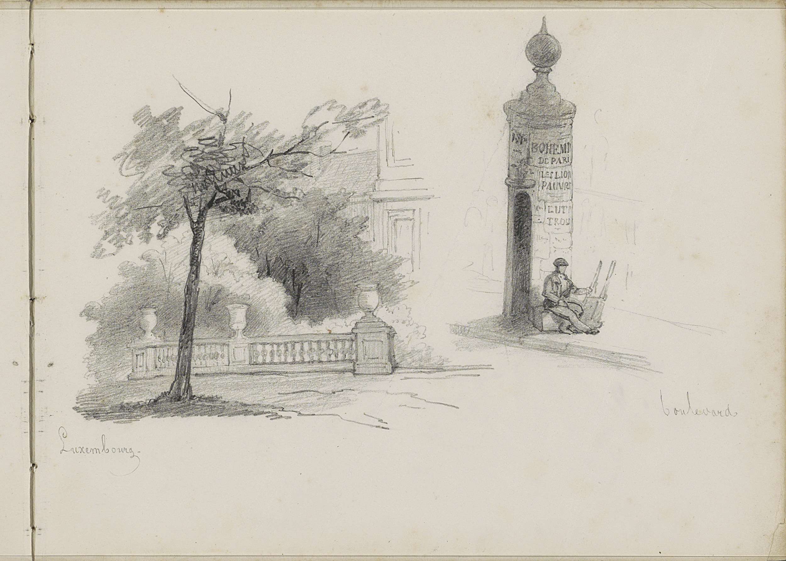 Jardin du Luxembourg en man bij een reclamezuil te P...