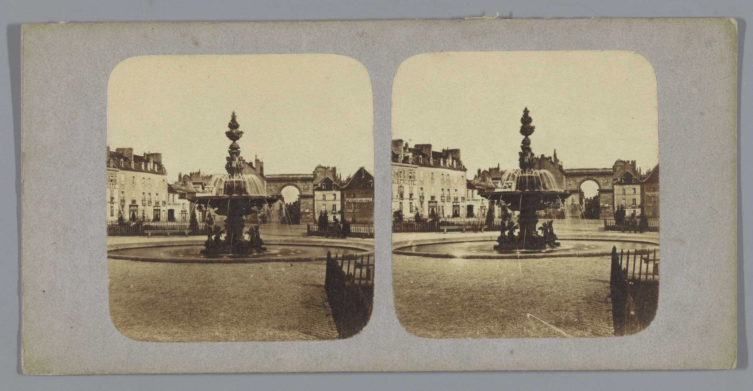 Plein met fontein en triomfboog, Frankrijk