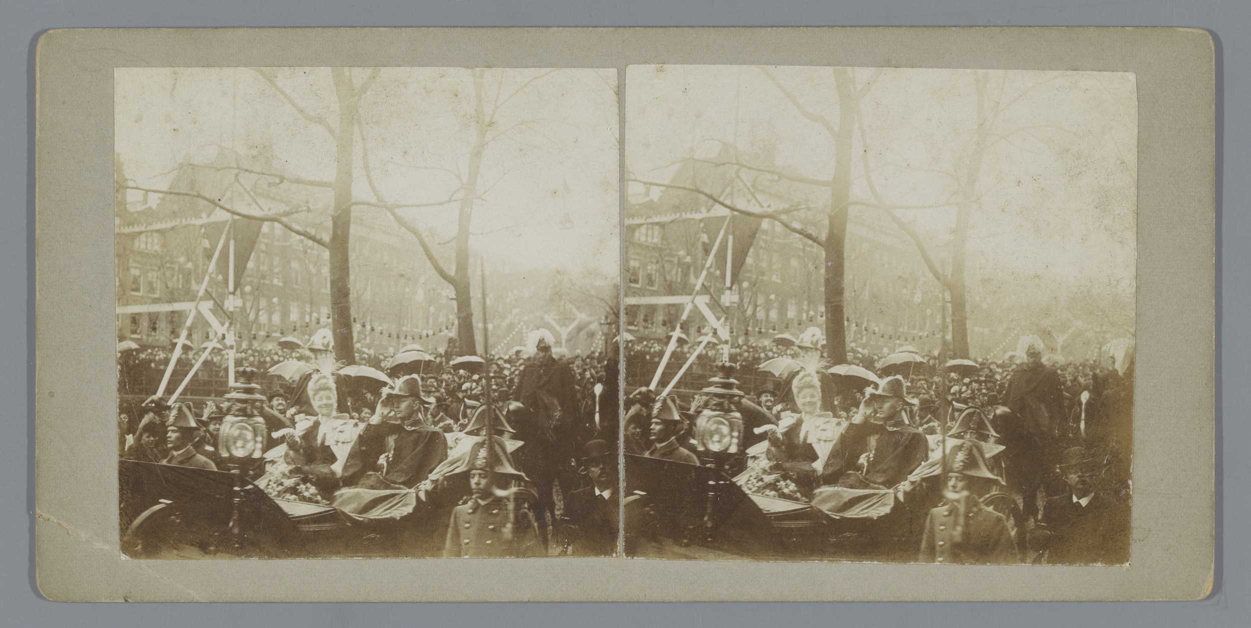 Koningin Wilhelmina en prins Hendrik in een open koets