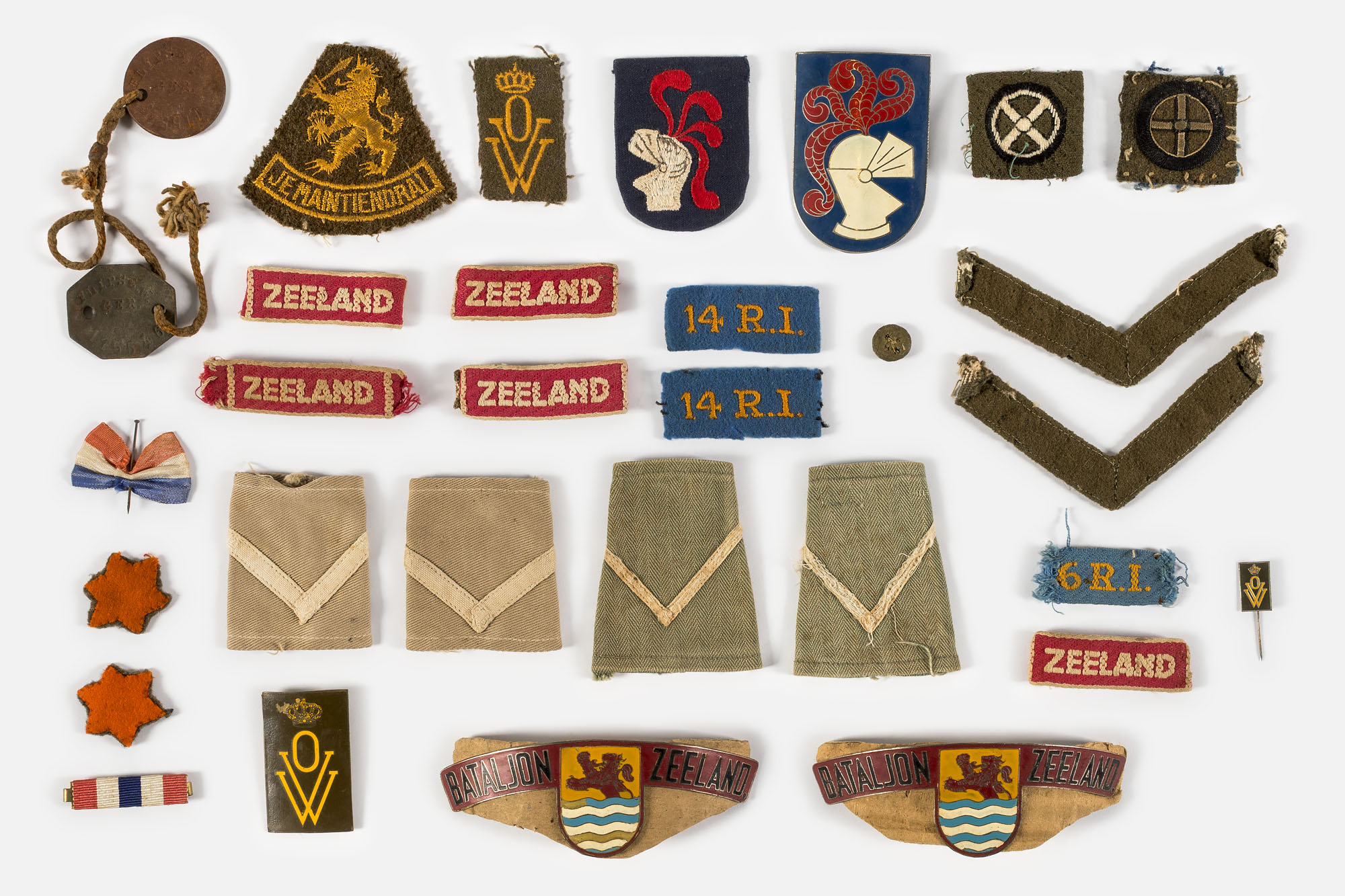 Rieten bakje met militaire emblemen van soldaat W. F...