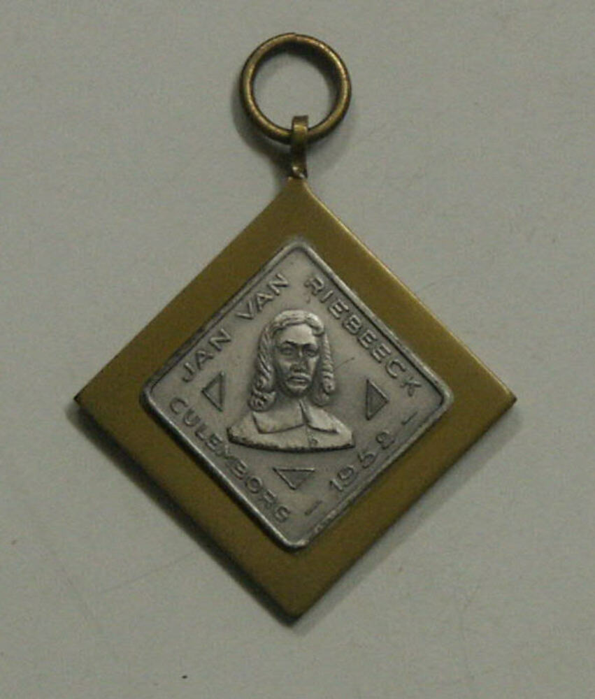 Medaille van koper en zilverkleurig plaatje voorstel...