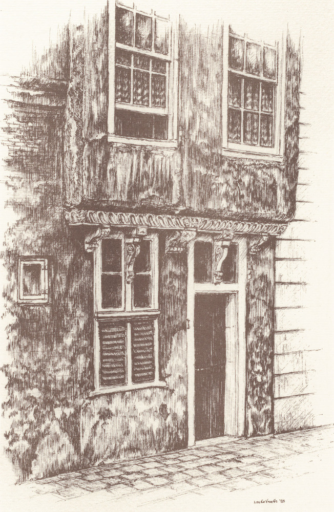 reproductie naar een tekening voorstellende het pand...