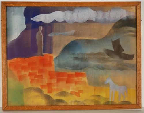 Compositie met figuur, zeilboot en paardje