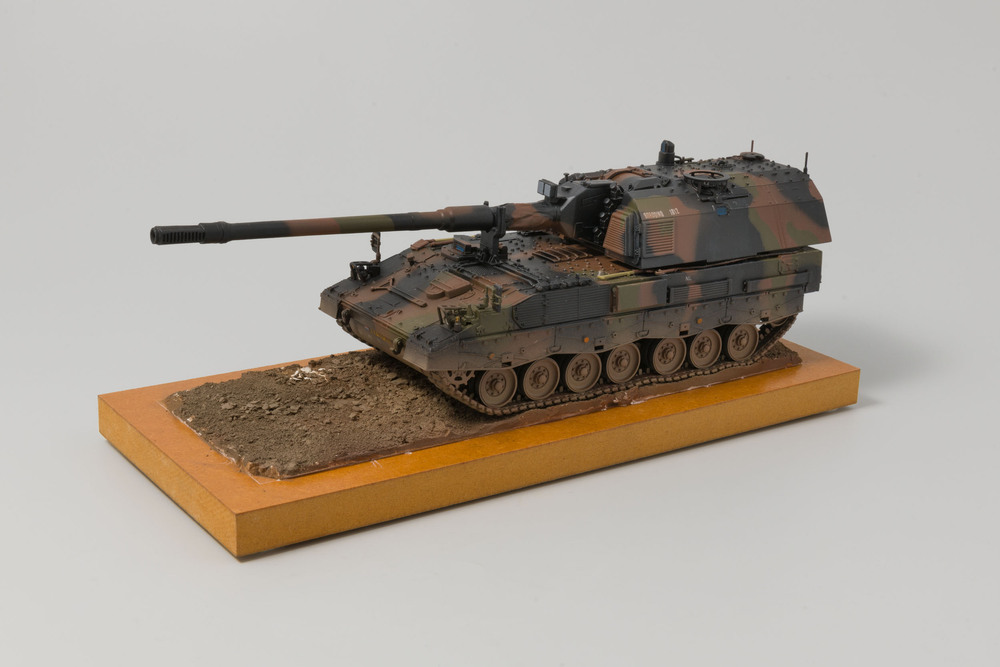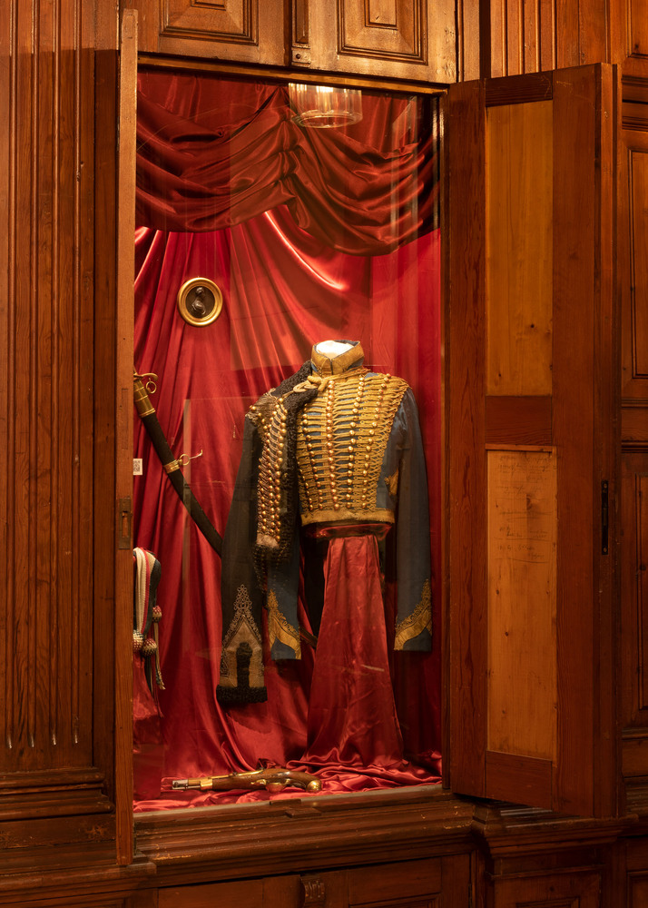 overzichtsfoto geexposeerde voorwerpen in grote kast...
