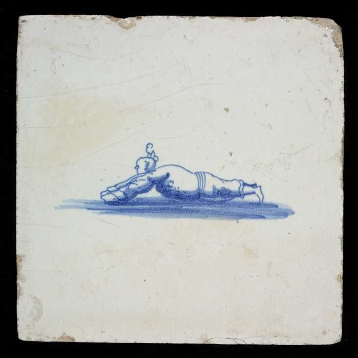 Fragment van enorme blauwe faience vaas, beschilderd...