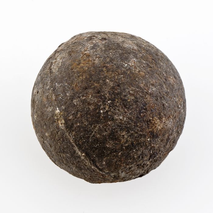 Kleine ijzeren kanonskogel, knobbel en gietnaad