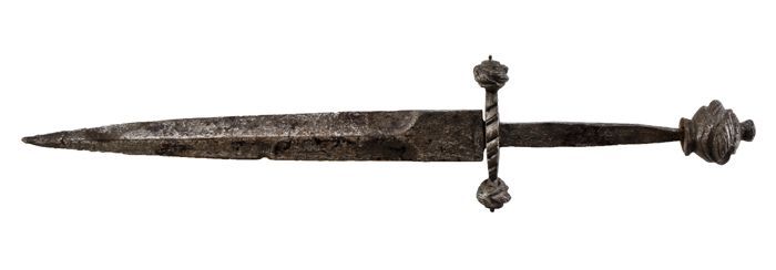 IJzeren dolk, knoppen aan gevest en pareerstang, gem...