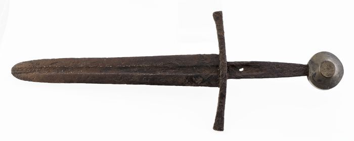 Kort ijzeren zwaard, grote koperen knop aan het gevest