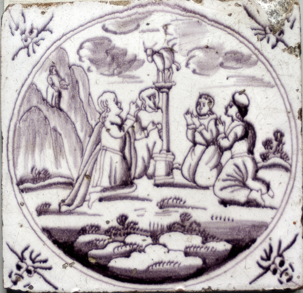 tegel van keramiek met tinglazuur, voorstellende: He...