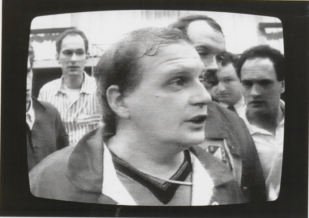 Op de foto een TV beeld van Ton Rolvink als scheidsr...