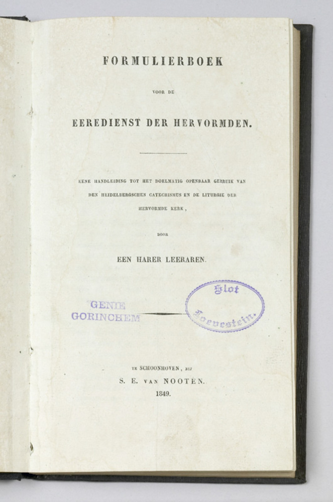 Formulierboek voor de Eeredienst Der Hervormden, 1849