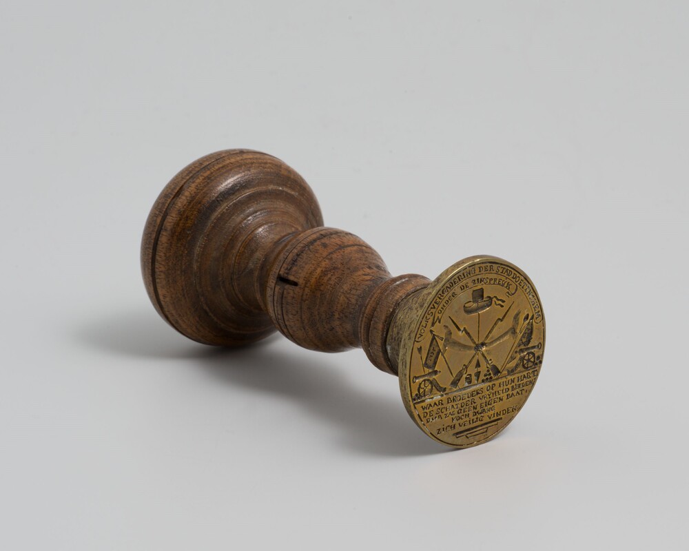 Misset; naamstempel van lood.