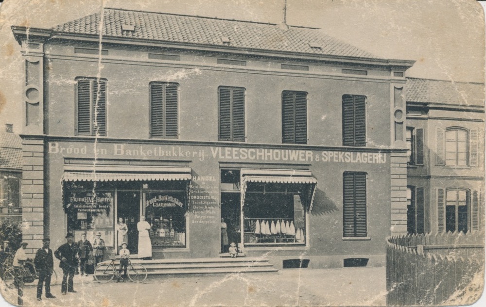 Ansichtkaart Rijnstraat slagerij Gödden en café De K...