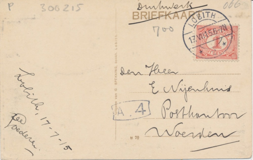Ansichtkaart pastorie links en café Nass rechts te G...