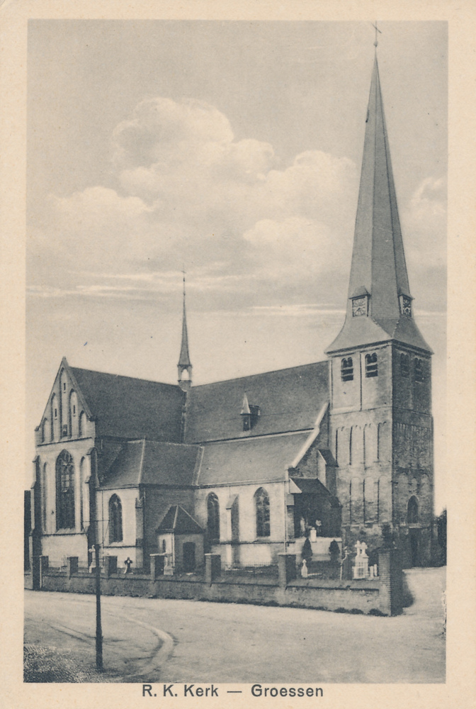 Ansichtkaart St. Andreaskerk en pastorie te Groessen