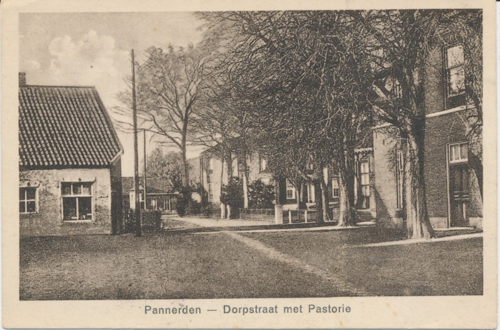 Ansichtkaart Dorpstraat met pastorie te Pannerden