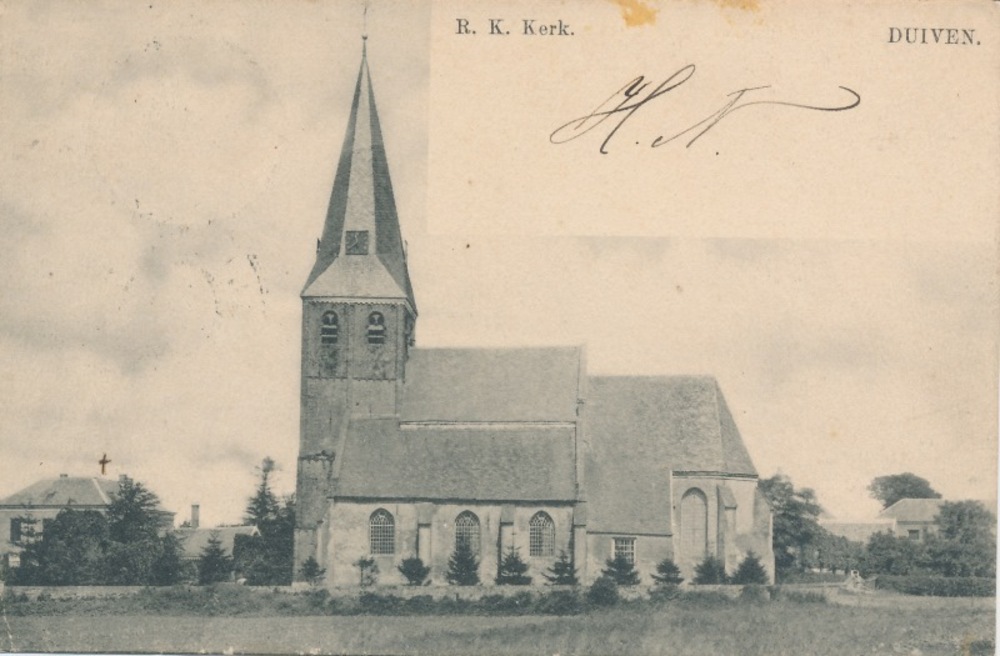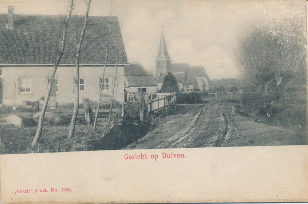 Ansichtkaart gezicht op Duiven met Remigiuskerk