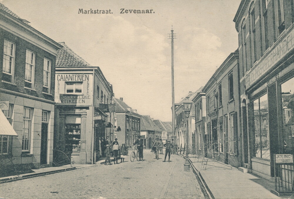 Ansichtkaart Doelenstraat met postkantoor te Zevenaar
