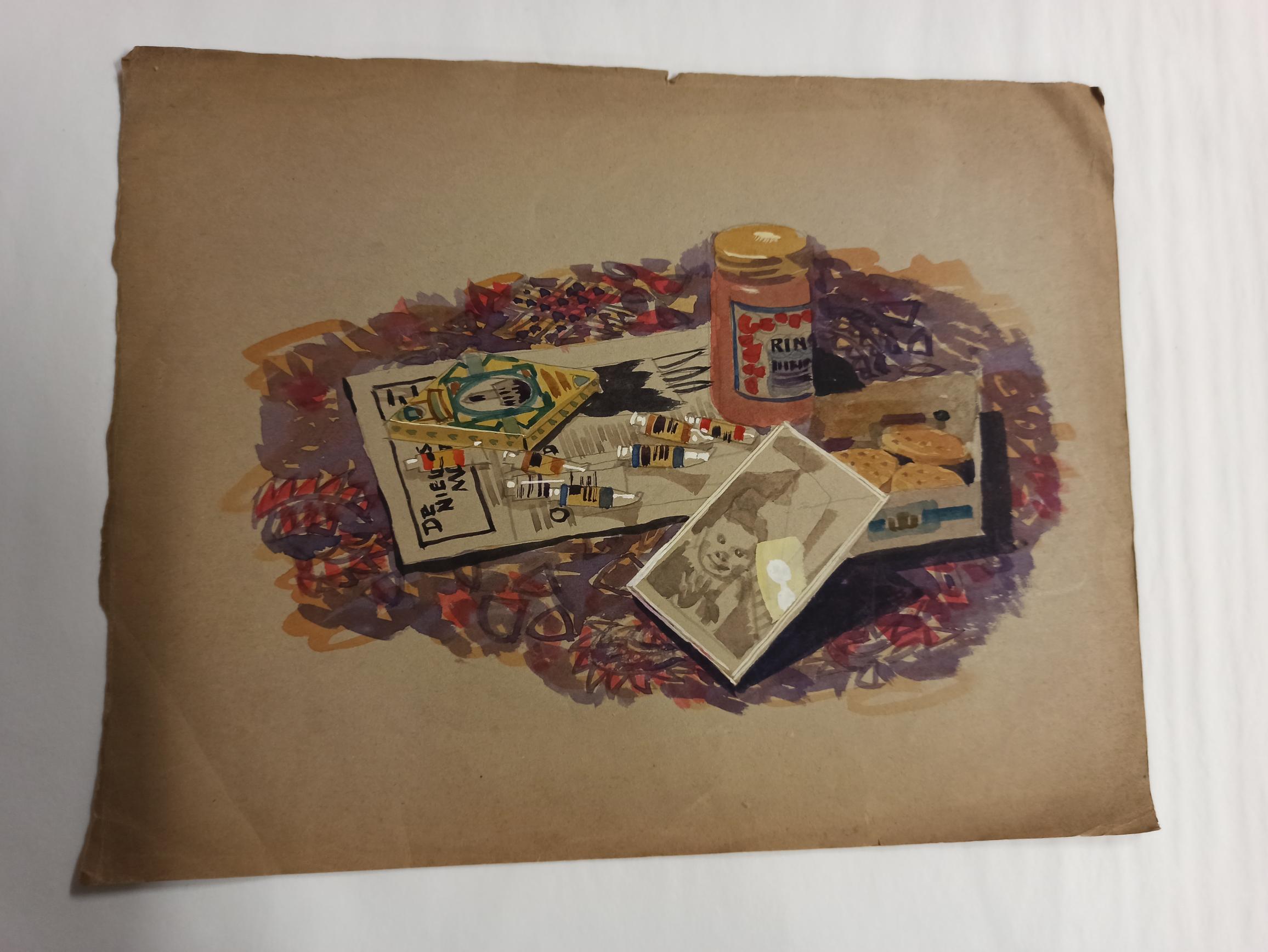 Stilleven met verftubes en koek