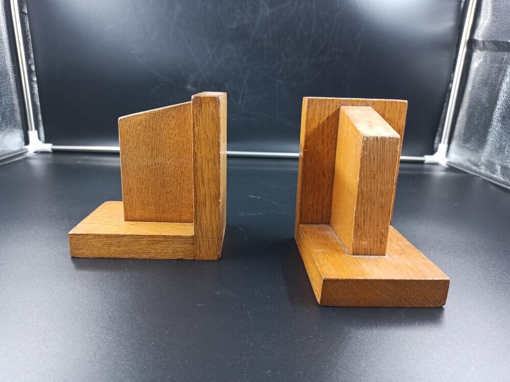 Een paar houten boekensteunen