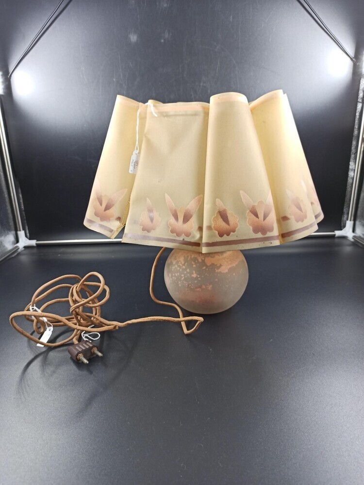Schemerlamp van bolvormige glazen voet en geplooide ...