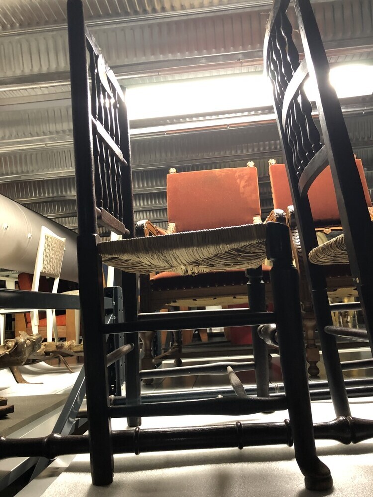Zes stoelen met rieten zitting