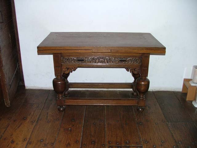 Uitschuifbare tafel op poot met houtsnijwerk