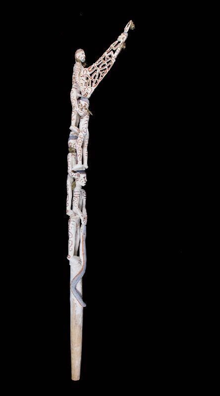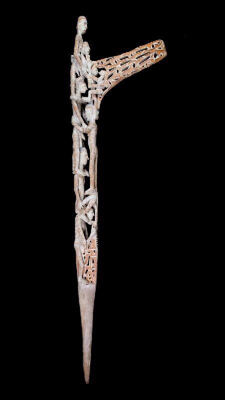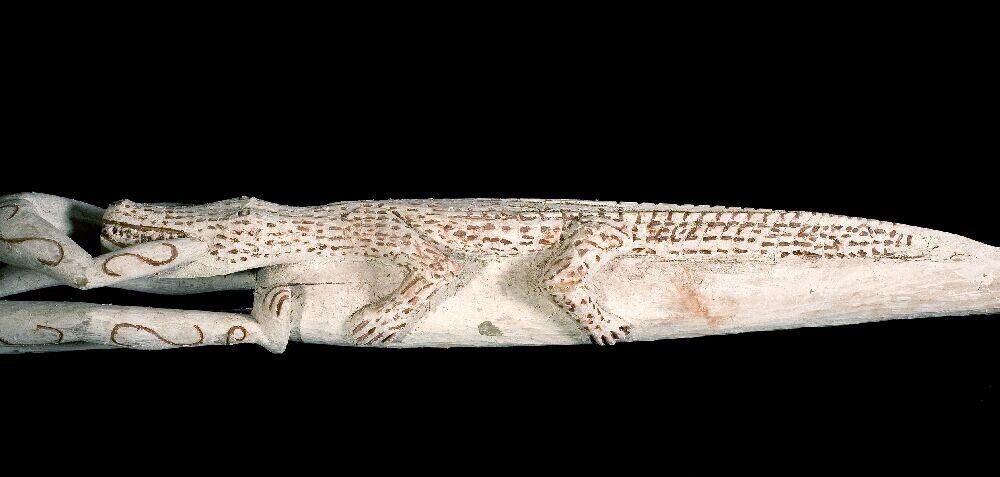 Bisjpaal met zeven mensfiguren en krokodil, waarvan ...