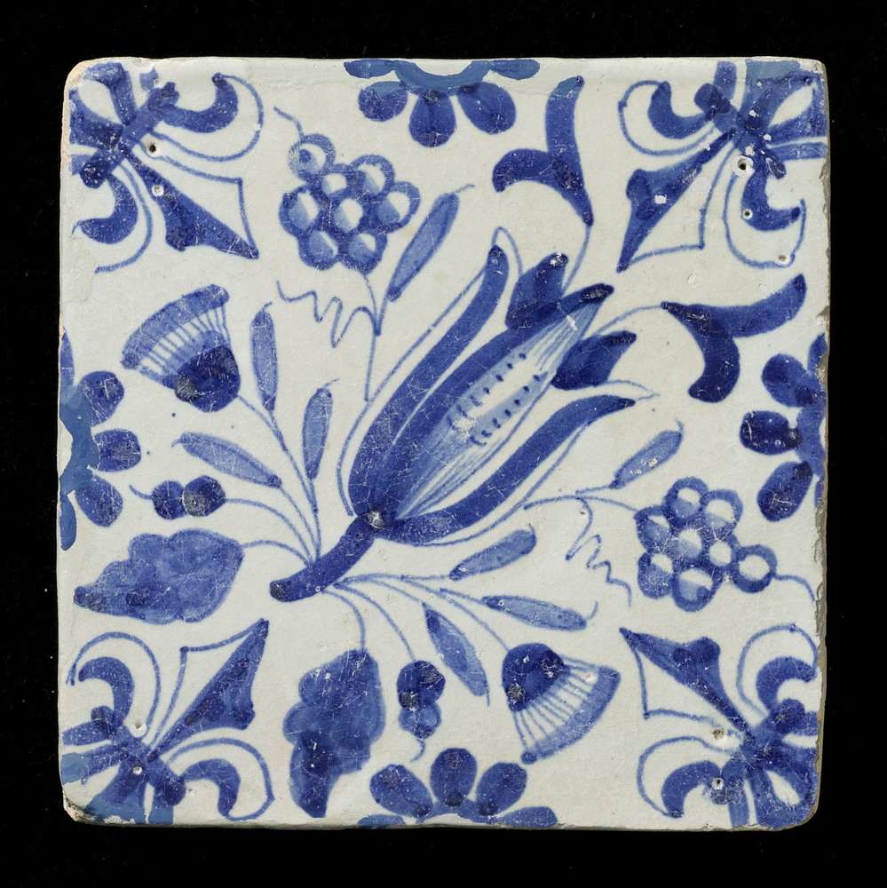 Tegel van keramiek met tinglazuur, voorstellende: or...