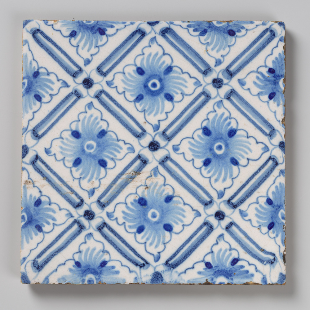 tegel van aardewerk met tinglazuur, voorstellende: o...