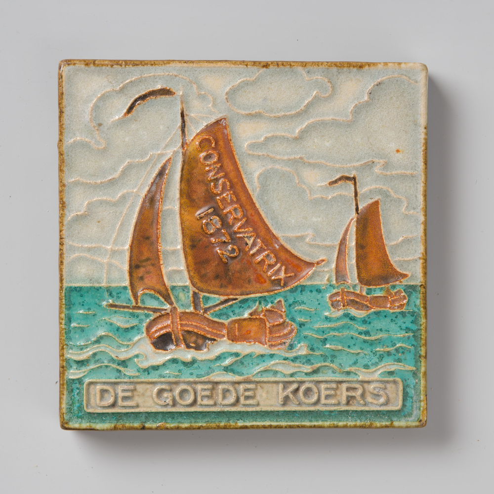 tegel van keramiek met tinglazuur, voorstellende: or...