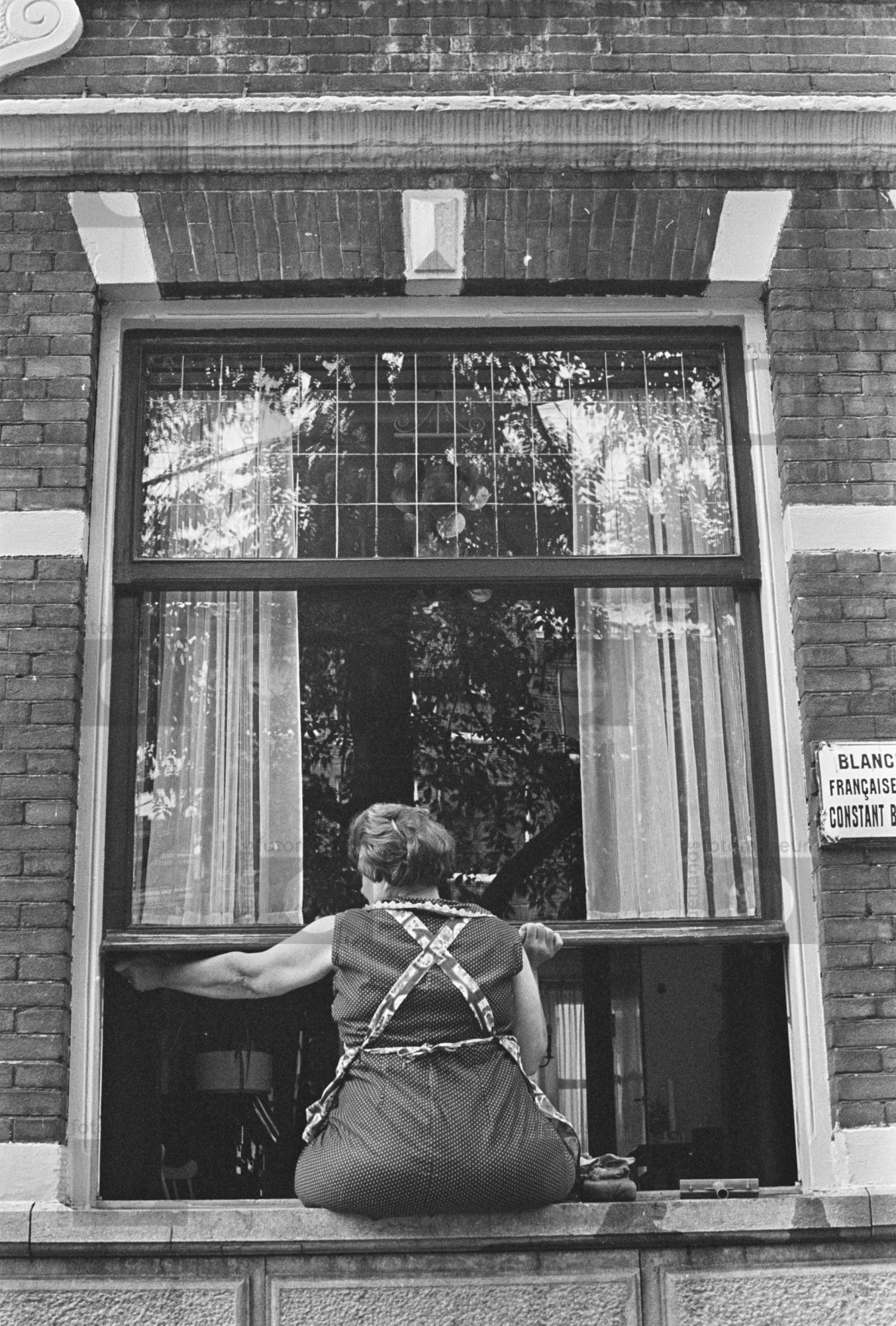 Amsterdam. Lijnbaansgracht. Vrouw duwt raam omhoog, ...