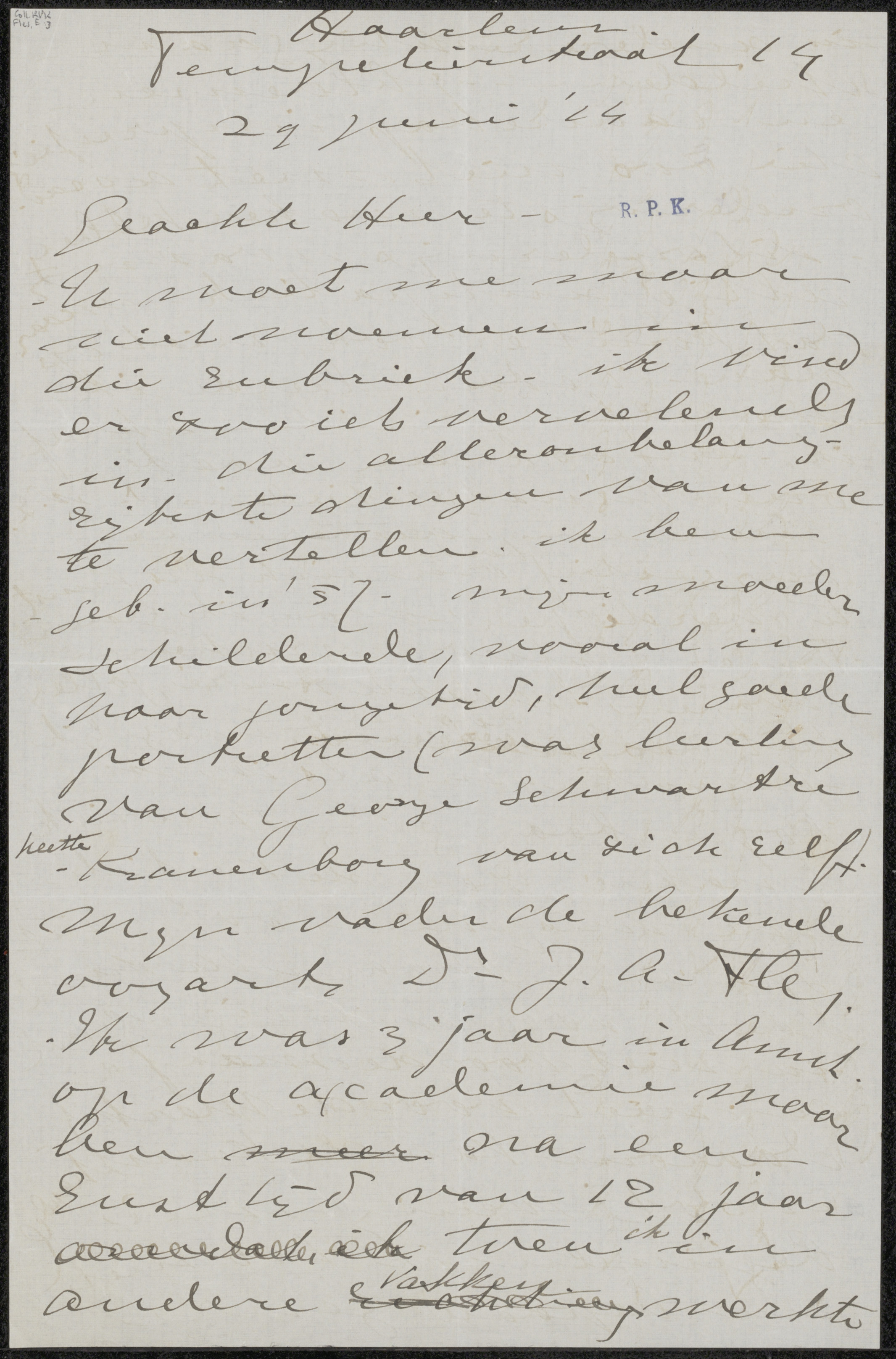 Brief aan jonkheer Hendrik Teding van Berkhout (1879...