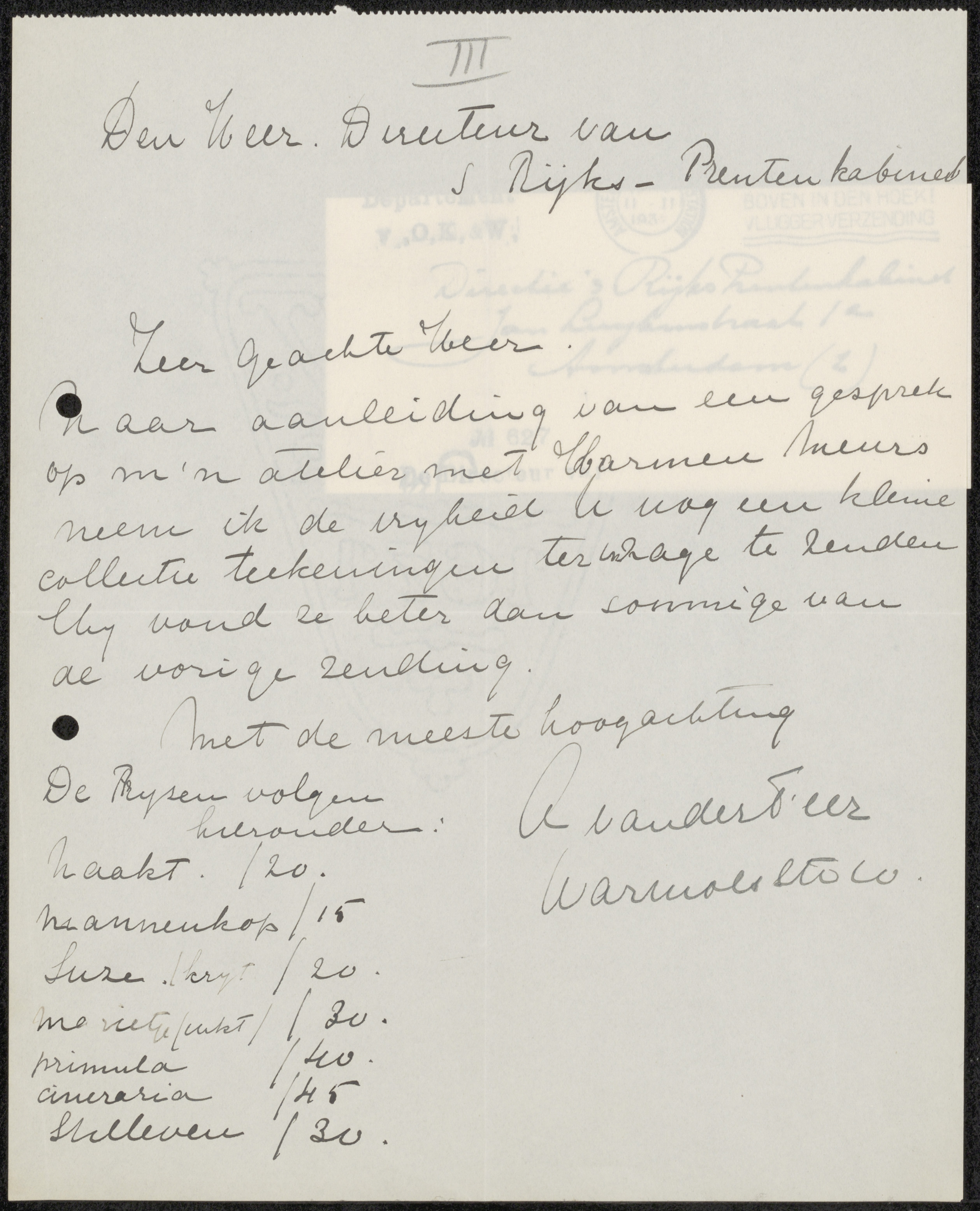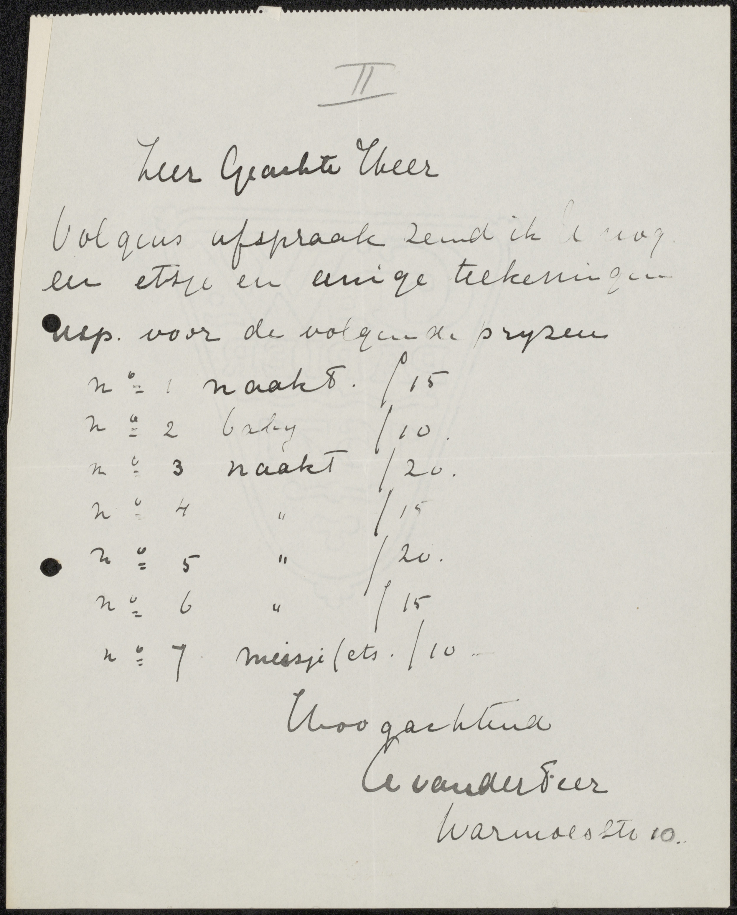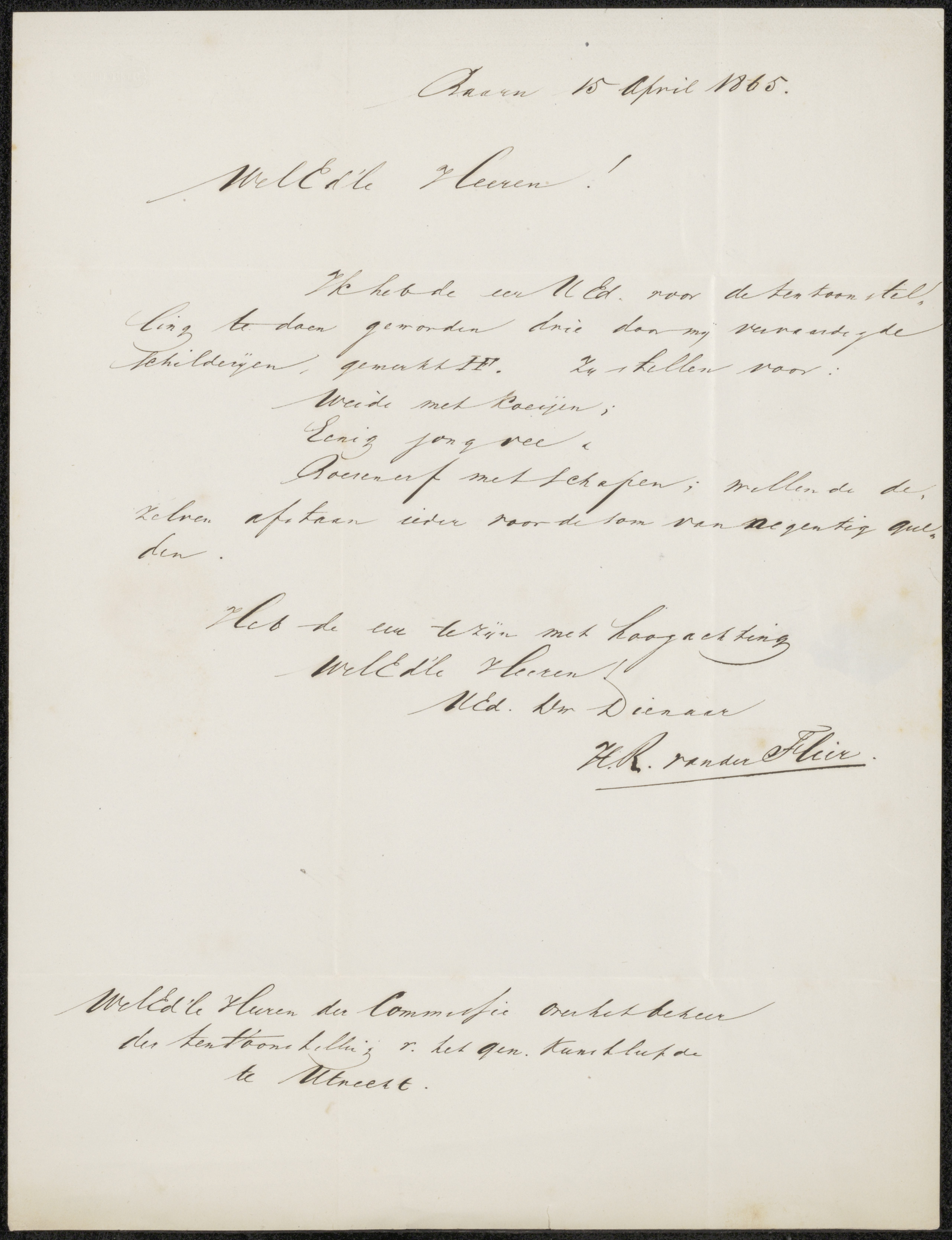 Brief aan de Commissie van de Tentoonstelling van Le...