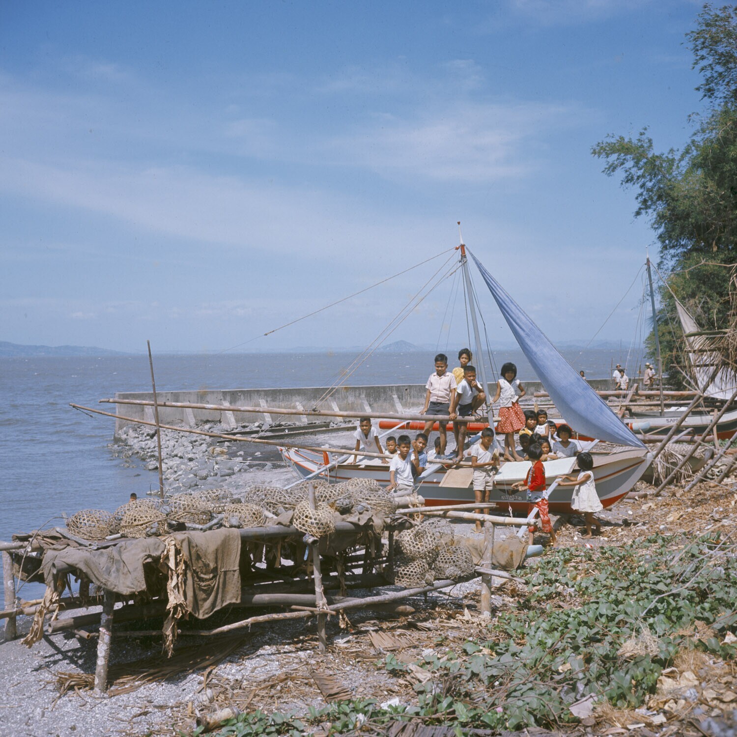 Vissers en hun schepen bij de Roxas boulevard, Manil...