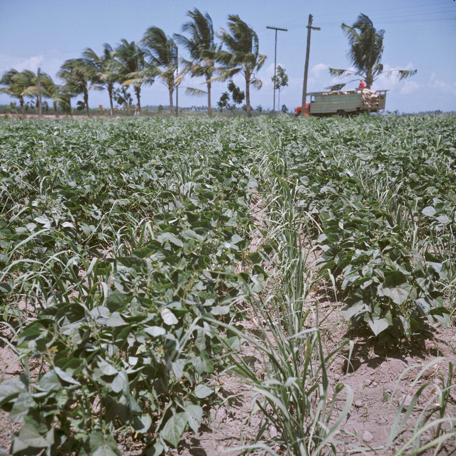 Veld met jonge suikerriet en tussenbeplanting van so...