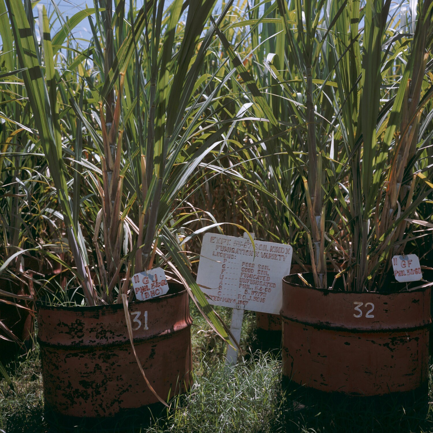 Close-up van bodemtype x fumigatie x variëteit, potp...