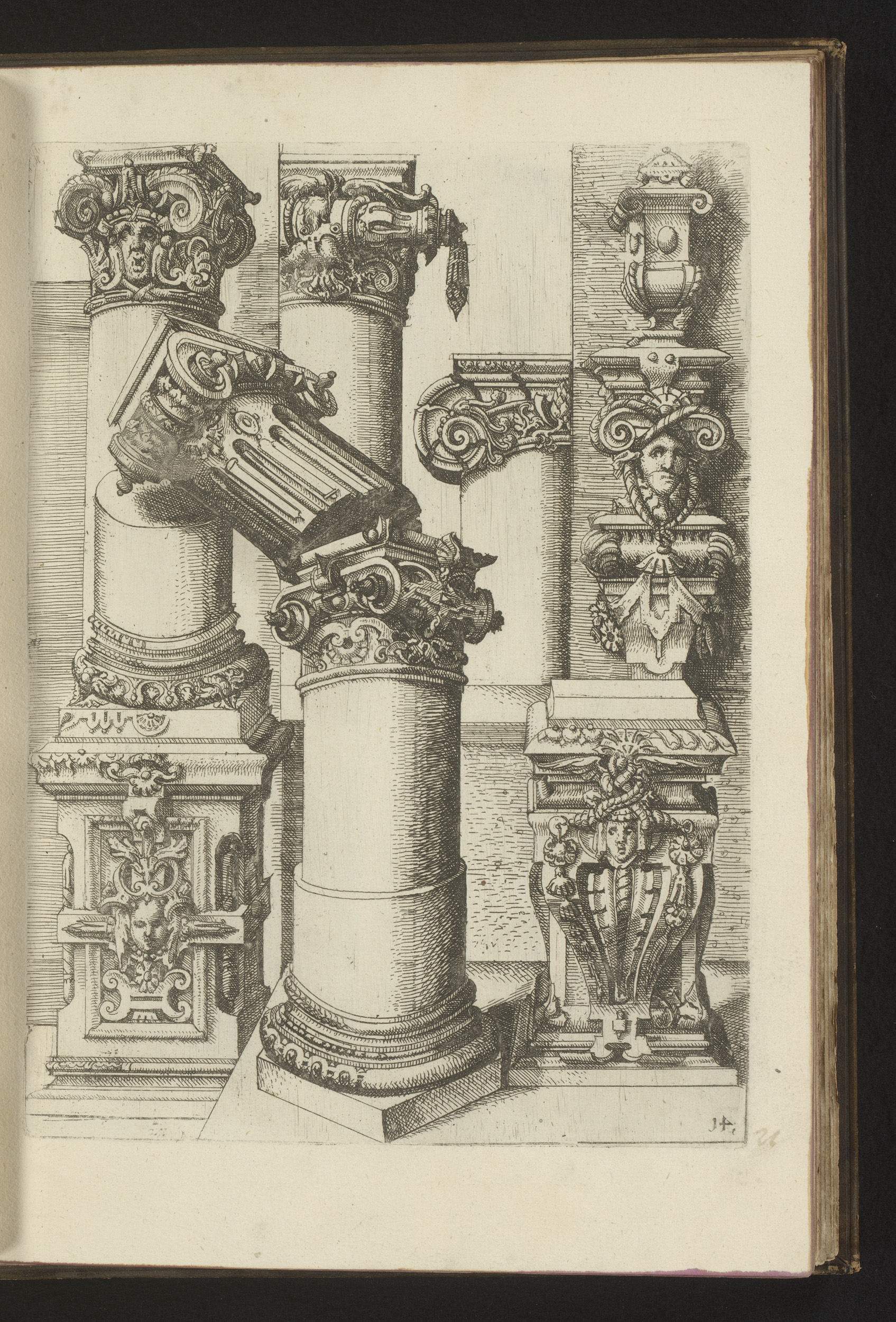 Vier schachten van Ionische zuilen, gedecoreerd met ...