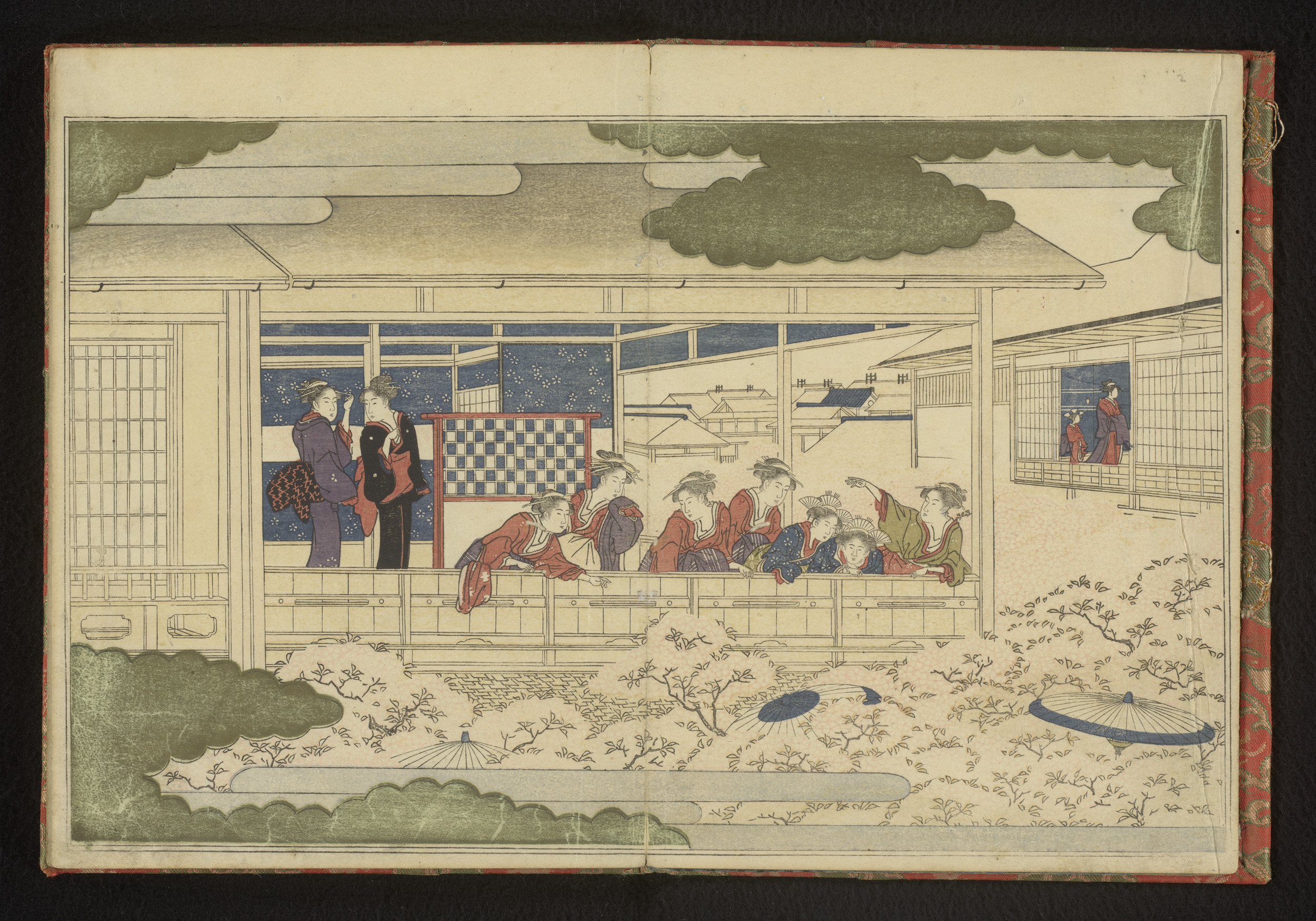 Picknicking and enjoying tea i nthe hills at Ueno, Edo
