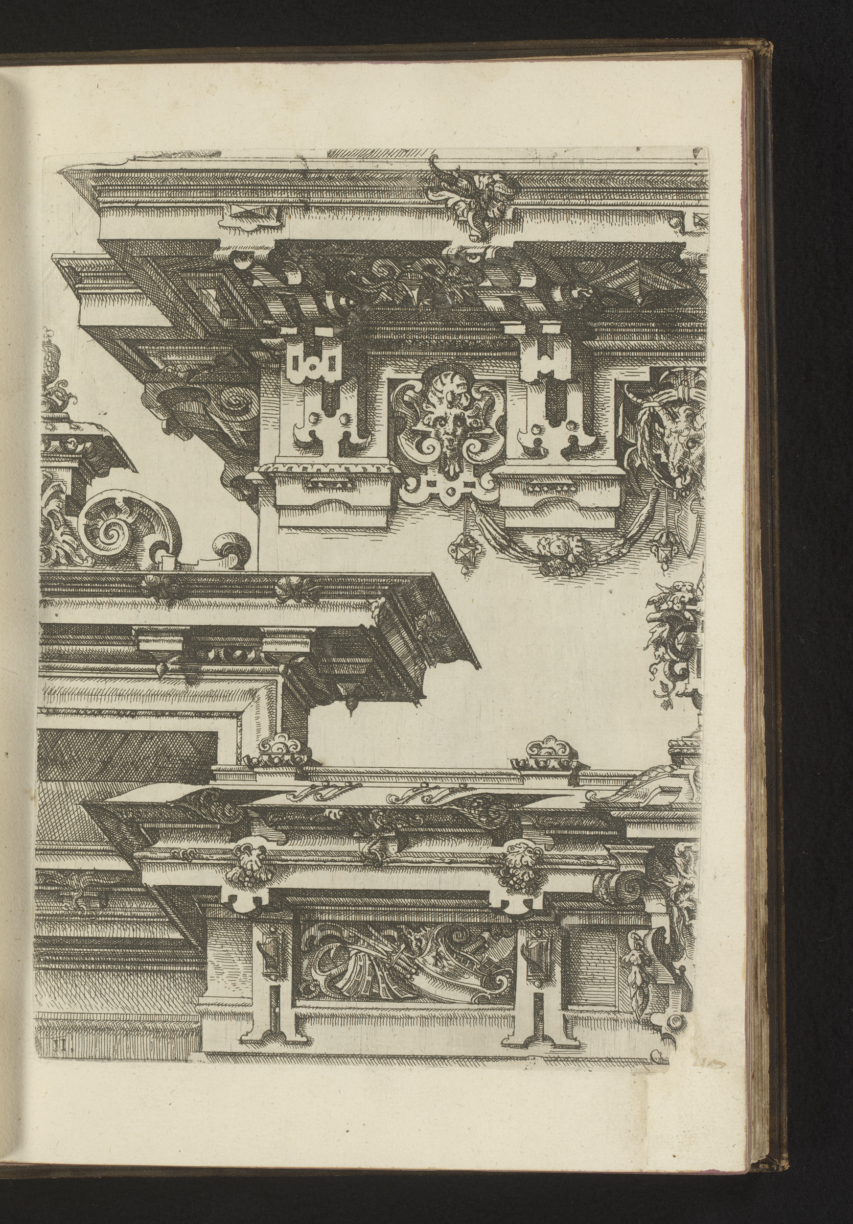 Drie Dorische kroonlijsten gedecoreerd met rolwerk, ...