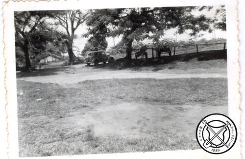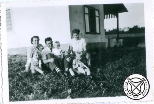 Een gezin vertrekt met de auto van de oude fazenda R...