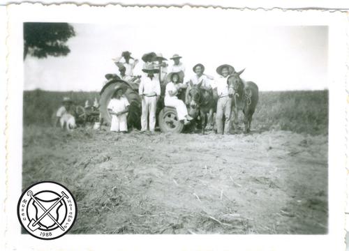 Op de combine: Wim van der Geest; hr. Rietjens. Op de trekker: Gerard Eijsink sr. (2)