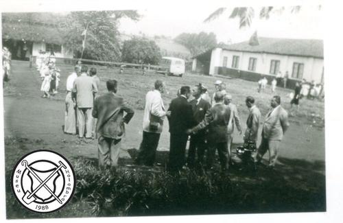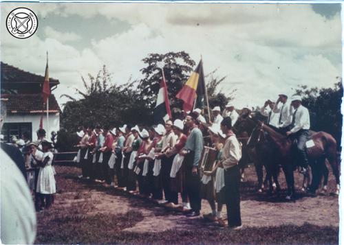 Een volksdansgroep tijdens bezoek van een autoriteit