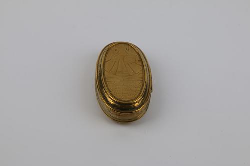 Ovaal koperen tabaksdoos met vrouwe Kevelaer en St. ...