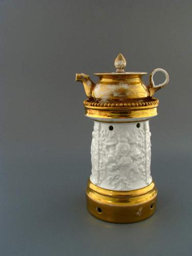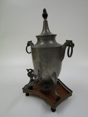 Tinnen koffiekraantjeskan in Empire-stijl op messing...