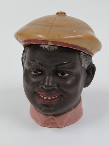 Aardewerken tabakspot in de vorm van een hoofd met pet
