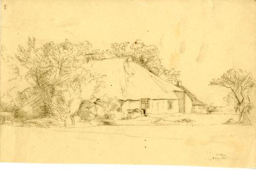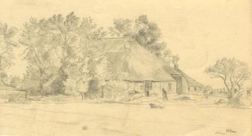 Tekening met potlood van een boerderij bij Hitzum do...