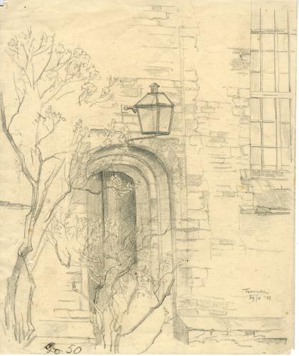 Tekening met potlood van de toegangsdeur van de Mart...
