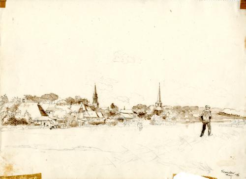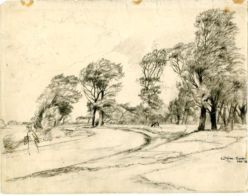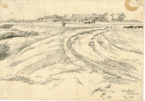 Tekening met potlood van de Slachtedijk bij Franeker...